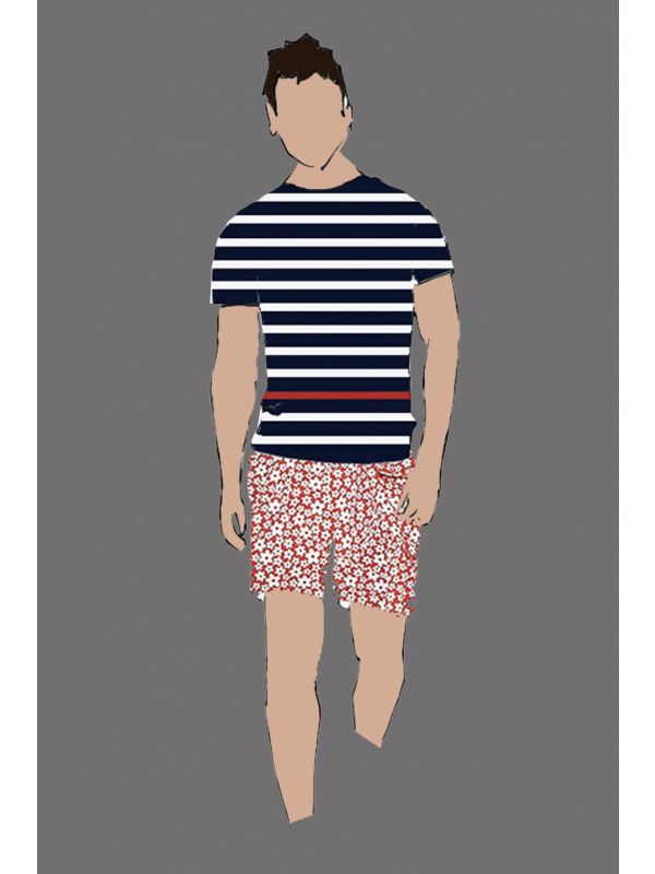 182087 - Uniform Short Male Red w/Floral Print White (Pool Bar)